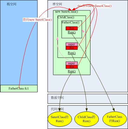 只是这儿fc1是定义成FatherClass,只有FatherClass的属性和方法是可见的,不过这不是本文讨论的重点.